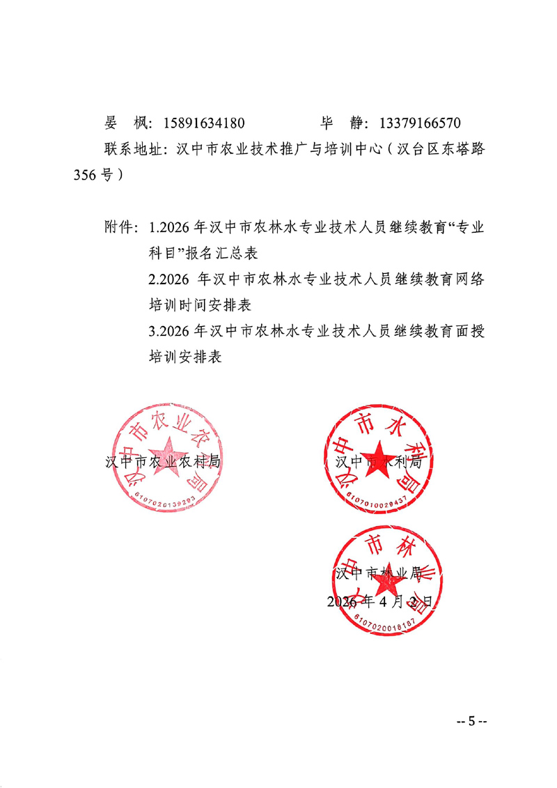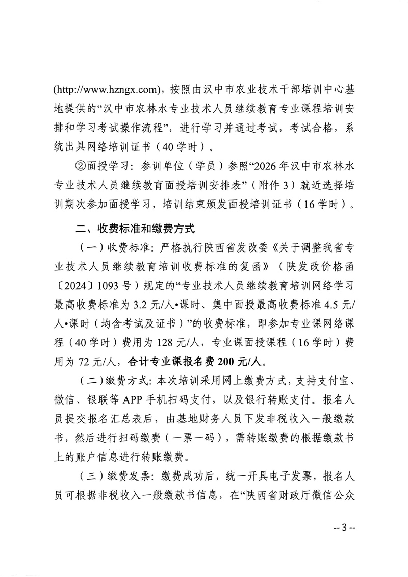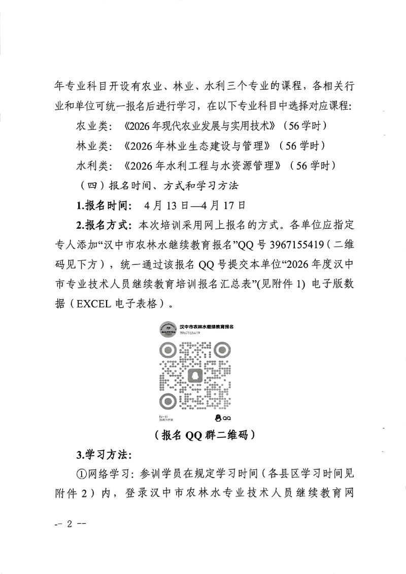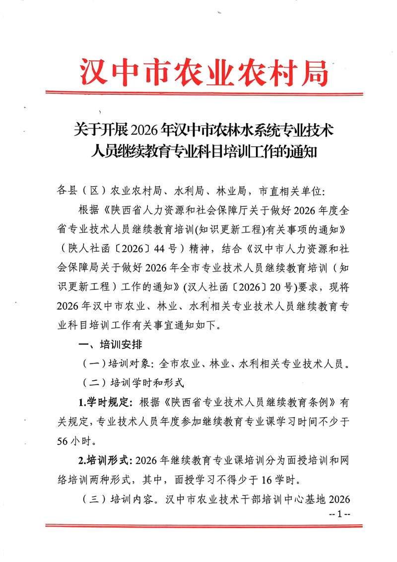 关于开展2026年汉中市农林水系统专业技术人员继续教育专业科目培训工作的通知