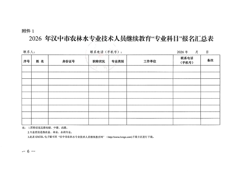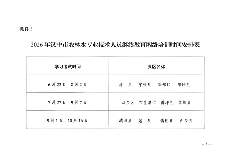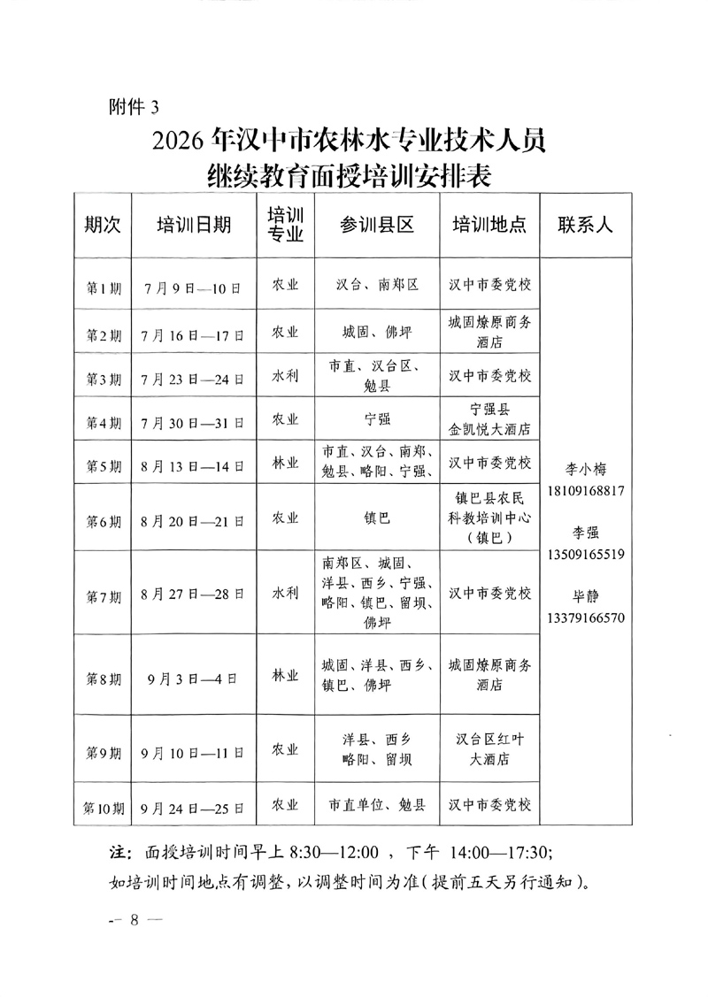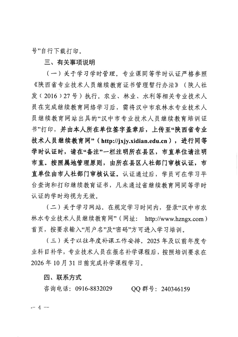 关于开展2026年汉中市农林水系统专业技术人员继续教育专业科目培训工作的通知
